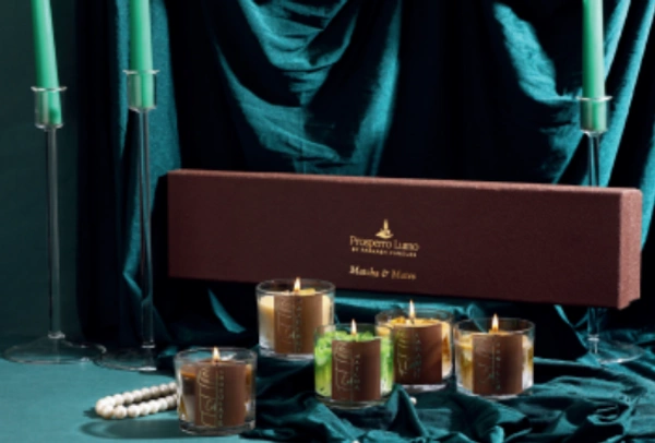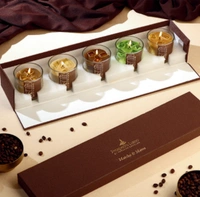 The Aroma Café Collection by Prosperro Lumo transforms everyday spaces into cozy coffeehouse escapes. Featuring five luxurious paraffin wax candles—Matcha, Chocolate, Vanilla, Hazelnut, and Caramel—each scent evokes the warmth and comfort of your favorite brew. Presented in an elegant leather-textured gift box with golden accents, this collection blends sophistication with sensory delight, making it a perfect treat for coffee lovers and fragrance enthusiasts alike.