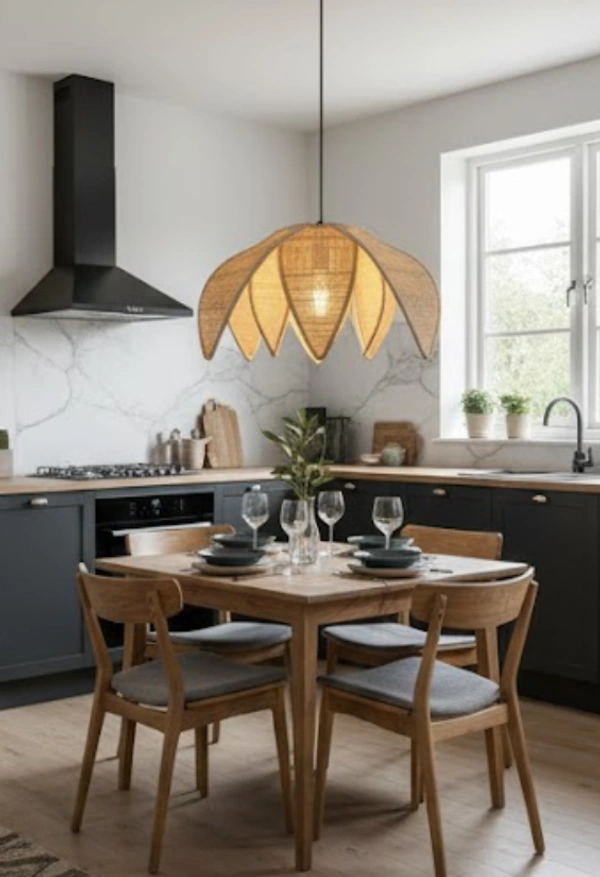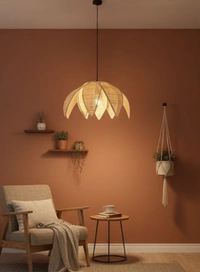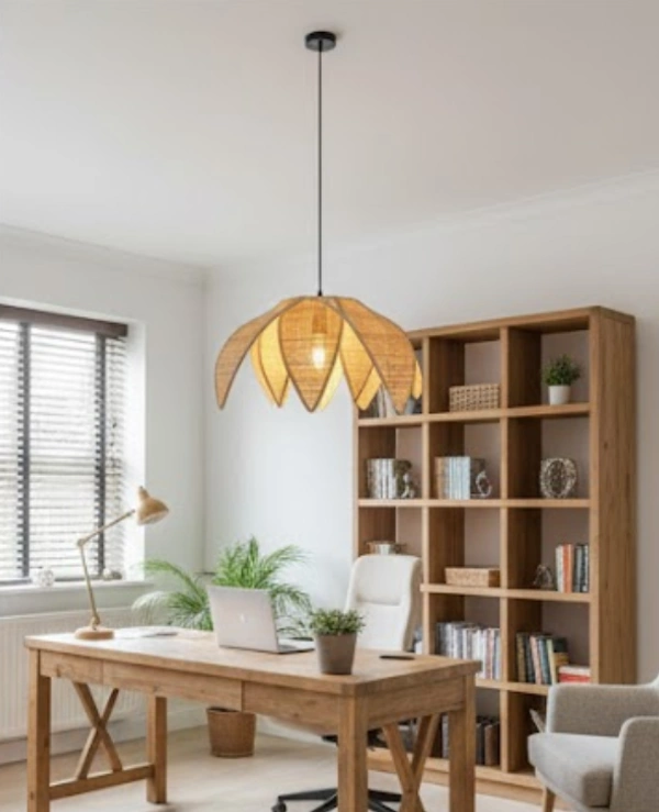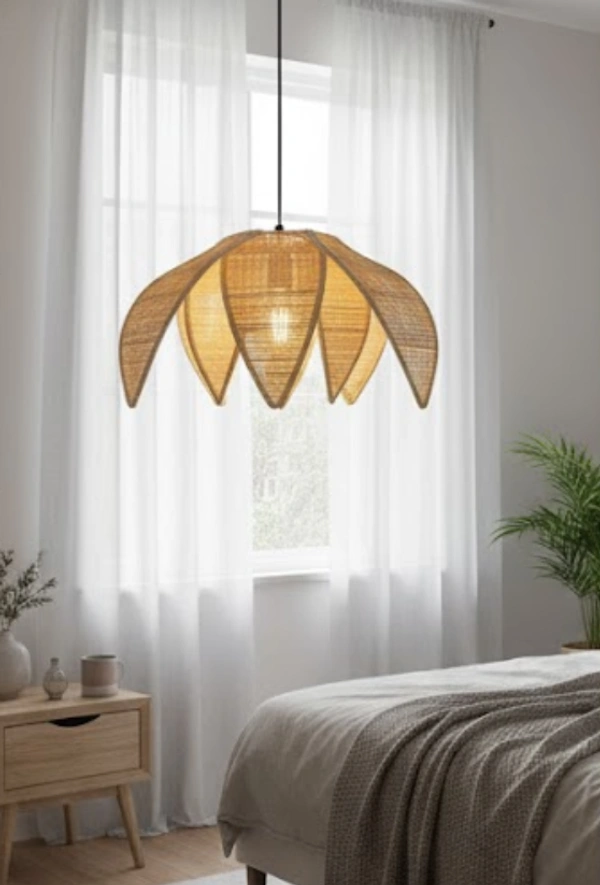 The Petal Bloom Bamboo Pendant Light is a handcrafted hanging light inspired by organic floral forms. Its layered petal-like structure softly diffuses warm light, creating a soothing and elegant ambiance while adding a sculptural statement to the space.