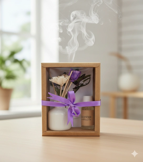 Enhance your surroundings with the soothing charm of our Reed Diffuser Gift Set, crafted to fill your space with natural fragrance and elegance. Each set features a ceramic diffuser pot, reed sticks, essential oil, and dried botanicals — creating a perfect blend of beauty and aroma. Choose from four enchanting fragrances: Lemongrass for a fresh and uplifting vibe, Rose for a floral and romantic touch, Lavender for calm relaxation, and Vanilla for a cozy, comforting warmth. Ideal for home décor or gifting, this set brings a lasting sense of freshness and tranquility.