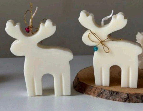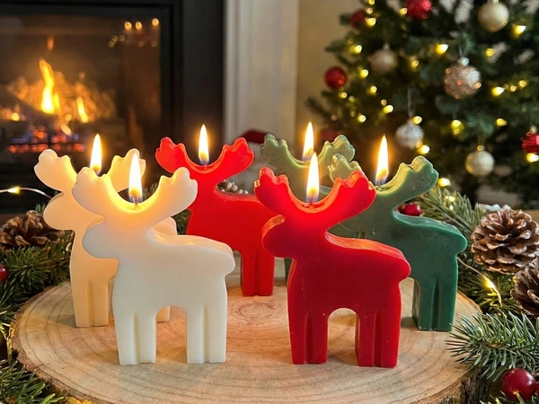 A charming festive candle featuring a reindeer design that adds warmth and elegance to your holiday decor.