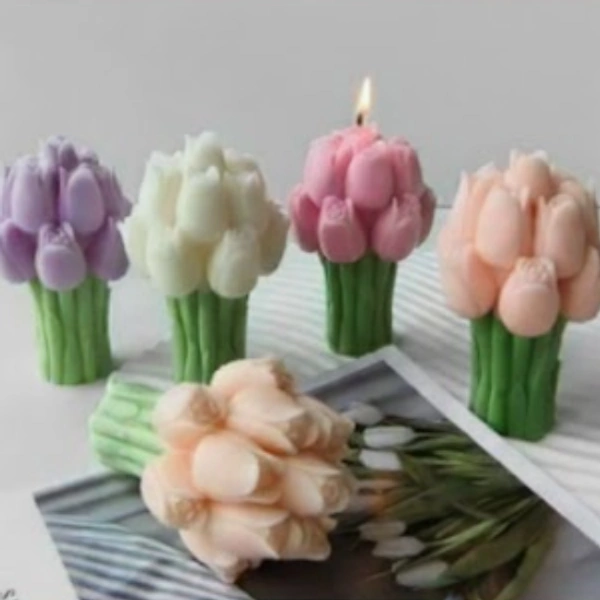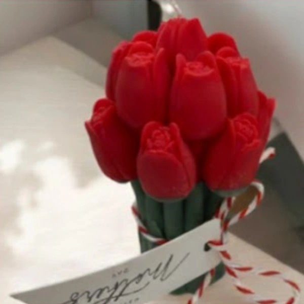 Handcrafted small soy wax candle shaped like a tulip bouquet. Ideal for gifting or décor, bringing floral freshness and delicate charm to your space. ❤️